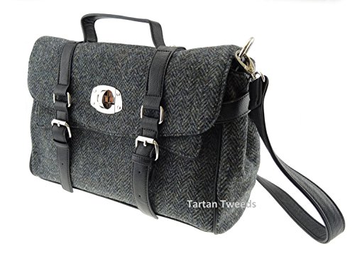 Best Seller! Ladies 100% Wool Charcoal Herringbone Harris Tweed Satchel Bag LB1001 Col1 Review
