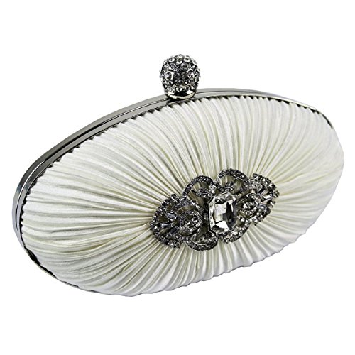 Best Seller! Oval Shaped Rouched Satin Crystal Clutch Evening Bag Wedding Bridal Evening Party Handbag (Ivory) Review