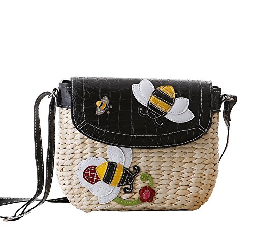 Best Seller! Tonwhar® Lady's Cute Bees Decoration Straw Bag Shoulder Crossbody Purse Review