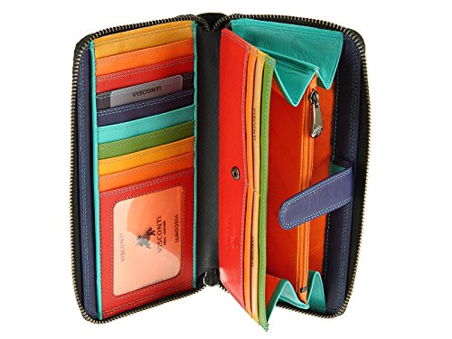 Visconti latest addition to Spectrum collection ladies XL soft luxury leather purse / wallet. Multi compartment purse with plenty of space for your credit cards, unfolded banknotes, ID card and loose coins and all that is secured with the zipper all around the purse. Made from high quality luxury leather which has that nice new leather aroma. Every Visconti Purse / Wallet comes in a gift box.